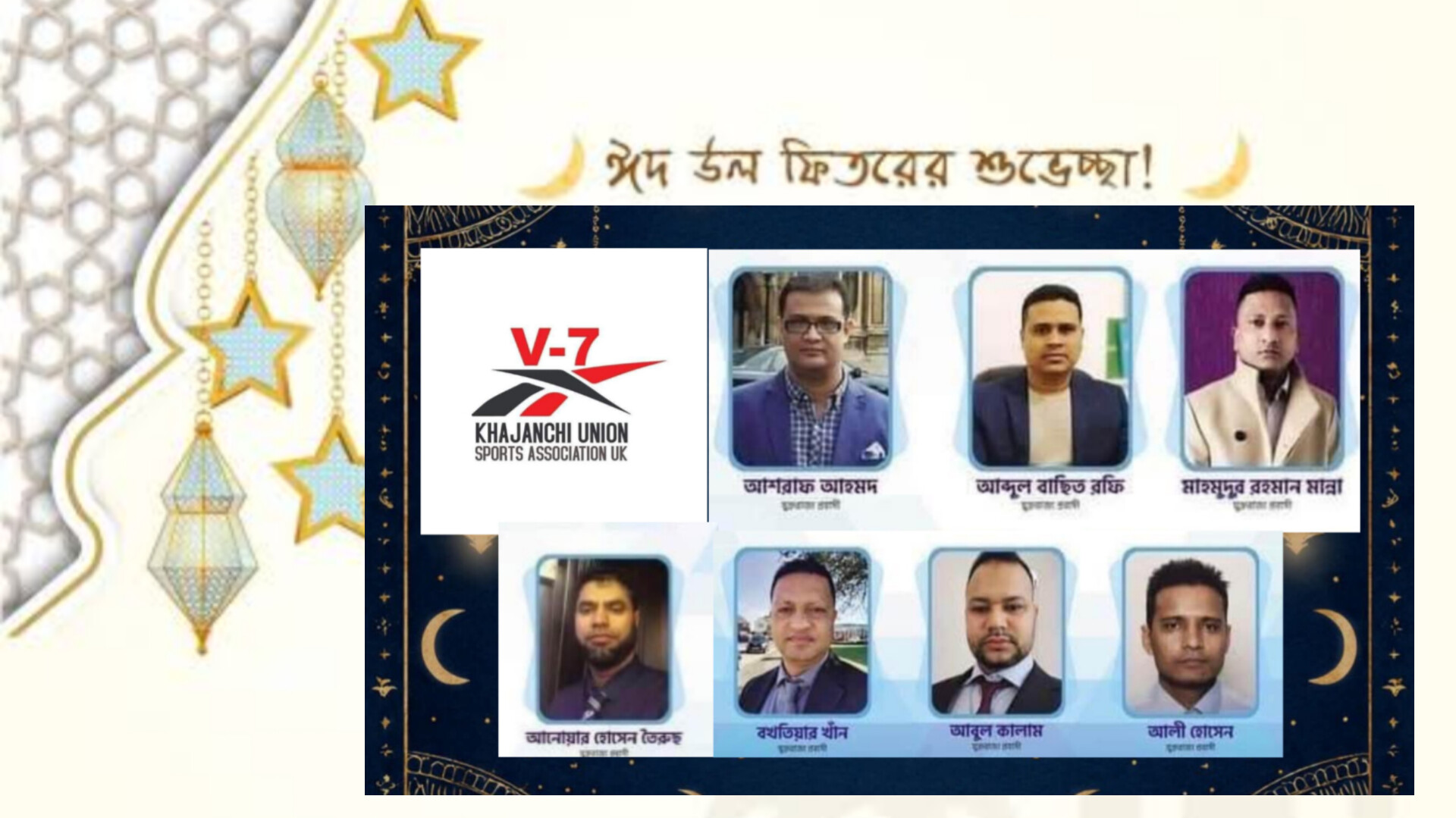 ভি সেভেন ইউ,কের পক্ষ থেকে খাজাঞ্চী ইউনিয়ন সহ বিশ্বনাথ উপজেলাবাসীর প্রতি ঈদুল ফিতরের শুভেচ্ছা জ্ঞাপন।